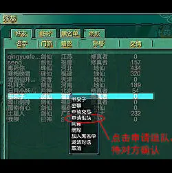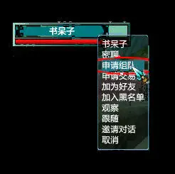 3、选择组队对象,右键点击该玩家信息栏,会弹出简易交互界面,选择“申请组队”;