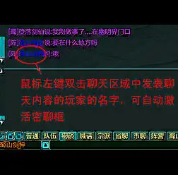 方法二:鼠标左键双击聊天框区域中发表聊天内容的玩家名字,可自动激活密聊框。