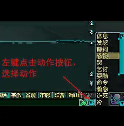 左键点击动作按钮,打开动作条,选择需要表达的动作即可。