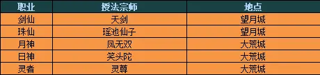 各职业授法宗师一览: