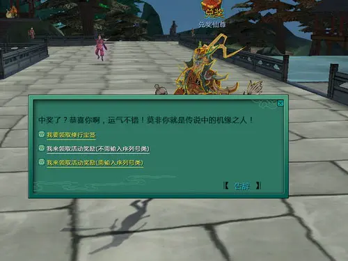 1、找到游戏中的兑奖仙尊(一般可在主城找到),点击“我要领取修行宝鉴”。
