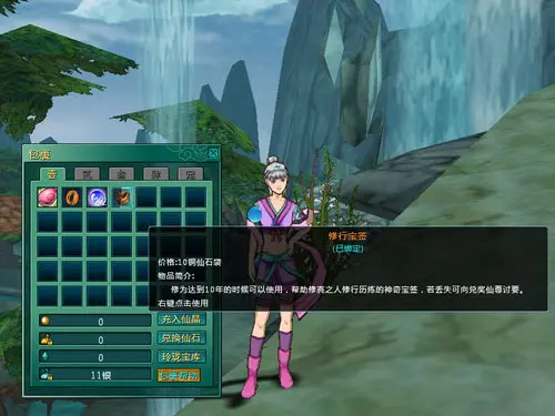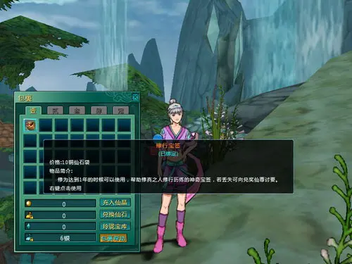 如何领取修行宝鉴:只要您创建了角色,请打开包裹(快捷键:B),就可以看到“修行宝鉴”道具。