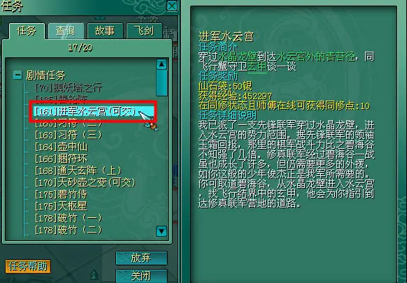 1、与头顶带有“因”的NPC对话,点击“可接受任务”下方的任务标题,阅读任务内容,点击任务文字后的“接受”按
