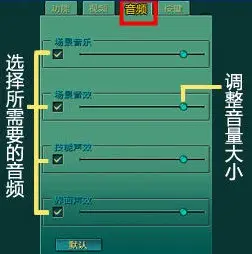 通过鼠标点击音效后的小方框,点选需要的音效。打勾为选中,再次点击则取消。可用鼠标左键拉动音效后的拉条框,调节