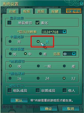 2、在系统设置里的视频选项中,勾掉关闭“卡通光影”
